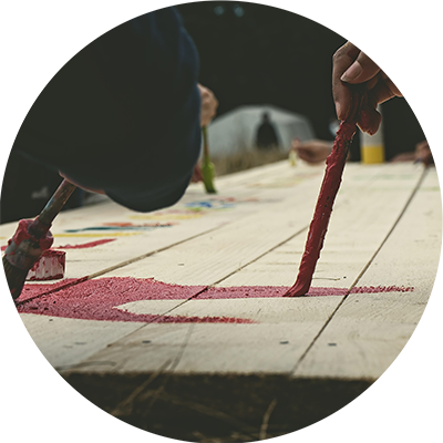 Tworzenie prac wielkoformatowych w które zaangażowane są dzieci zespołowo.